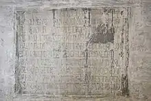 Op ad nordvæggen står tre epitafier og ved sydvæggen, mellem dørene til hhv kirken og det fri, yderligere et. Mellem vinduerne på vestvæggen hænger en mindetavle over Christen Hee-Wadum og hustru. Endelig sidder der to stenplader i nicherne under de to sydligste vinduer. Den, der sidder i vestvæggen, blev anset for at være gået tabt, men dukkede frem ved afrensningen af den gamle kalk i foråret 2008. Det er indskiftpladen fra et epitafium, der tidligere sad foran vinduet.