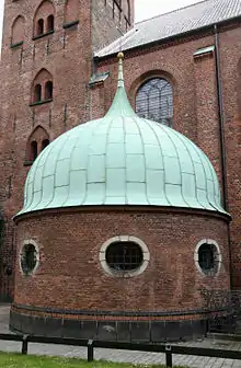 Den seneste tilbygning til kirken, som stadig står, er Griffenfelds gravkapel, som er bygget 1672-73 og tegnet af Lambert van Haven. Det er en cirkelrund bygning på 9 m i ydre diameter med kobbertækket kuppeltag på kirkens nordside lige vest for tårnet. Adgang til kapellet sker fra det nordre sideskib, og her var en portal, som må være gået tabt under branden. Dens udseende kendes ikke.