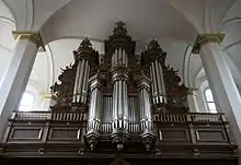 I 1876 byggede Knud Olsen et nyt orgel til kirken, og ved den store renovering i 1878-80 fik det en ny facade, tegnet af Storck og skåret af billedskærer H.C. Berg i samme renæssancestil som det øvrige nye inventar. Orglet havde 40 stemmer fordelt på tre manualer og pedal. Storcks facade omfatter et rygpositiv, men den del af facaden var bare en attrap. Orglet blev ombygget af Marcussen i 1935, men der kendes ingen detaljer.