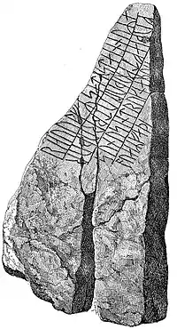 | Translitteration | rHuulfʀ sati stain nuʀa kuþi aft kuþuMut bruþursunu sin truknaþu --… ąuaiʀ faþi |