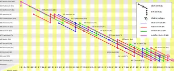 De lang-livede isotoper i toppen af disse kæder, som er henholdsvis thorium-232, uran-238, and uran-235, har eksisteret siden jordens dannelse.
