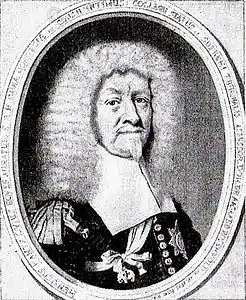 - Afbildet på Heinrich Hansens maleri 1880 af arvehyldningen 1660, som ses på Frederiksborgmuseet.