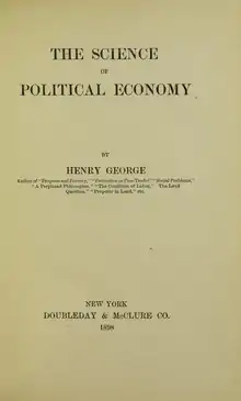 - The Science of Political Economy, (Den nationaløkonomiske videnskab)1898