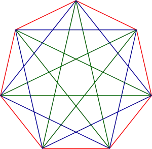 ![]() Begge heptagrammer kan tegenes i et heptagon |