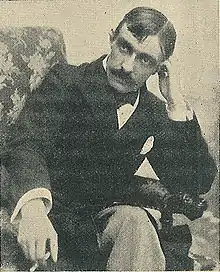 | En meget kendt Forfatter, der i øvrigt foruden at være abnorm ogsaa har vist Talent, er naaet til i disse sidste Dage at staa frem og snakke om Landets Forsvar? Staklen, der næppe nogensinde har haft et Vaaben i sin Haand, lider formodentlig i Øjeblikket af platonisk Kærlighed til en Løjtnant | ||