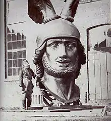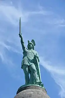 Konstruktionen af den 53,46 meter høje statue begyndte i 1841 og var færdiggjort i 1875 med stor finansiel støtte fra Preussen. Byggeriet fandt sted efter tegninger af billedhuggeren Ernst von Bandel.