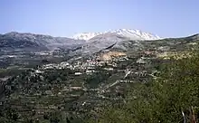 Nybygget bosætning på Golanhøjderne nedenfor Hermonbjerget.