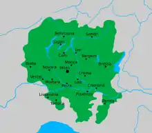 ![]() Hertugdømmet omkring 1494. | |||||||||||