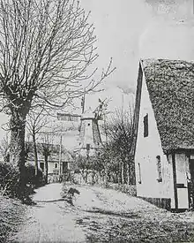 - Gammelt billede af den stråtækkede Østre Hine Mølle (Webside ikke længere tilgængelig)