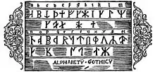 "Göternes alfabet", der viser runealfabetet som Götarne brugte.