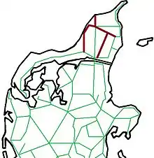- Hirtshalsbanen (HB), åbnet 1925, men oprindeligt planlagt som sidebane til Hjørring-Aalbæk Jernbane (HA), der aldrig blev anlagt