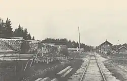 Den første stationsbygning blev opført i 1898 men brændte 22. maj 1943. Derefter blev en tidligere mejeribygning købt og benyttet og benyttet som stationsbygning. Den er senere revet ned.