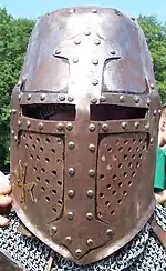På Bayeux-tapetet ser man Vilhelm Erobreren, der skubber sin hjelm tilbage, så hans mænd kan se at han er uskadt. Senere i middelalderen var de heldækkende hjelme en medvirkende faktor til heraldikkens fremkomst, da man nu ikke kunne se, hvem der var hvem.