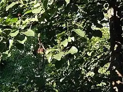 Knopperne er spredte og stilkede, bleggrønne med brune spætninger. Bladene er ægformede med en kort spids og savtakket rand. Oversiden er blank og mørkegrøn, mens undersiden er lysegrøn med totter af orangerøde hår ved nervevinklerne. Løvspringet er meget tidligt, og løvfaldet sker først hen i november.