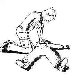 Der gives kunstigt åndedræt og hjertemassage (hjerte-lunge-redning):