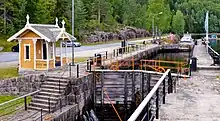 Ved Hogga finder man et komplet anlæg med slusevogterbolig, vagtstue og driftsbygninger. Ved sluserne ligger også Hogga kraftverk.