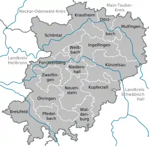 - Byen Öhringen med kommunerne Pfedelbach og Zweiflingen