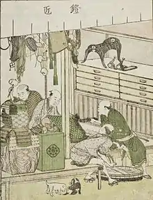 Japanske smede som er i gang med at producere samurai-rustning, - en rustning der har ligheder med rustningen (bogu) inden for Kendo.