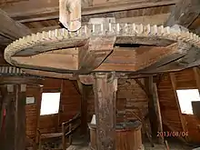 Fra stjernehjulet fordeles kraften til de forskellige drev. Forskellen i diameter på stjernehjulet og kværnenes mindre stokkedrev øgede kværnenes hastighed betragteligt i forhold til tidligere.[8] Dette blev herefter forbundet med møllens øvrige vitale dele, bl.a. en eller flere kværne. Selve hovedakslen, der løber tværs ned gennem møllen, ender på dette niveau i et leje, dette består af en kugle i en metalskål med olie, der giver fuld bevægelighed.[9]