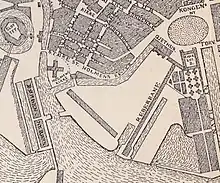 Fra omkring 1650 lå der en gade ved navn Størrestrædet langs med kanalen. Den var en del af et lille kvarter, hvor de fleste gader så som Laksegade, Ulkegade, Hummergade and Delfingade var opkaldt efter fisk og andre havvæsener.[2] Langs med gaden lå der flere offentlige bygninger, herunder Generalkommissariatet.