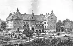 Holstenshuus, hvis ene fløj var opført 1579 af Knud Venstermand i bindingsværk, med 2 eller 3 fløje og rødt tegltag, medens de to andre skyldtes Jørgen Schult (1643) og var i grundmur, blev ombygget 1863-1868 af arkitekt H.A.W. Haugsted. Ved ombygningen nedreves de 2 bindingsværksfløje, der var meget faldefærdige, mens den grundmurede nordfløj blev bevaret og tilføjet to mindre kamtakkede fløje mod øst og vest. Derved åbnedes bygningen mod syd i stedet for som tidligere mod øst. Huset blev atter ombygget 1889 af Martin Borch, der gav det sit nuværend udseende. Efter at være nedbrændt 30. december 1908, hvorved kun de tykke ydermure og kældrene fra 1644 forblev intakte, blev Holstenshuus genopført med visse ændringer i 1910 ved arkitekt, kgl. bygningsinspektør Vilhelm Petersen.