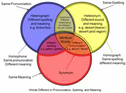 - Ord der både staves og lyder ens. Et eksempel er 'søm', der både kan være det, man slår i med en hammer, og en syning i et stykke tøj.