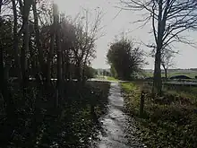 Natursti "Gjernbanen" krydser Trehøjevej, hvor Horn trinbræt lå