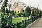 Kirkegården er udvidet flere gange. Dens oprindelige form var nærmest kvadratisk, men i takt med byens udvikling har man flere gange måtte inddrage nye arealer, senest i 1955. Det nuværende kapel blev indviet 1972. Lidt syd for kirken finder man Rosenkrantz-slægtens store familiegravsted indhegnet af en jerngitter. Det blev anlagt efter man opgav begravelserne inde i kirken. Seneste begravelse var i 1996, hvor den sidste lensbaronesse Carin Rosenkrantz blev stedt til hvile her.