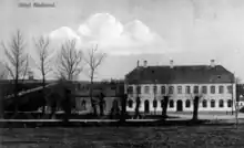 Hadsund set fra syd, 1878. Hotel Hadsund ses i midten af billedet.