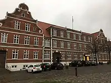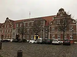 Bygningen er opført i røde mursten i historicistiske Rosenborg-stil, der er inspireret af nederlandsk renæssance. Det består af en nordfløj langs Vinhusgade, en midterfløj og en sydfløj langs Sankt Peders Kirkeplads. Både nordløjen og sydfløjen har gavle ud mod kirkepladsen.[4]