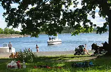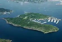 Man kan tage en båd fra Vippetangen for at komme ud på øen. I bugten på nord/østsiden ligger der en bådehavn hvor flere af byens bådforeninger holder til.