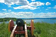 Øen har været en vigtig del af forsvaret af Christiania. Under Napoleonskrigene mellem 1807 og 1814 blev der anlagt et fremskudt forsvar med to kanonstillinger til at dække indsejlingen til byen. Videre er der fem krudthuse på øen (fra 1826–27), den såkaldte Kommandantboligen (fra 1850), oprindelig et militært laboratorium, ombygget i slutningen af 1800-tallet til bolig; og et stort lagerhus, det såkaldte Lavetthuset (bygget 1847) som er Norges største bindingsværkshus. Her blev der blandt andet lagret lavetter (understel til kanoner), men også andet militært udstyr som våbenvogne, telte etc. Særlig krudthusene blev bygget isoleret ude på øen fordi man ikke ønskede at lagre så store krudtmængder tæt inde ved byen med den eksplosions- og brandfare dette ville indebære.