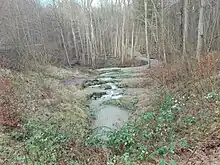 Hovedgrøften ved stryget ved udløbet til Giber Å efter voldsom regn i december 2015