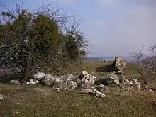 ![]() Landskapet ved Hovgården med Adelsö kirke i baggrunden, marts 2008 | |