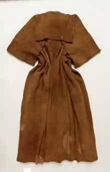 På overkroppen bar liget to skindlag, det ene over det andet.[4] Yderlaget er syet sammen af flere stykker fåreskind i to farver, hvorved dragten fik facon og hårene, som vendte udad, faldt som de skulle. Omkring hals og skuldre var indsat for, ligeledes af fåreskind mend med hårene indad. Syningerne er fint udførte. Slaget var lukket i halsen og måtte tages på over hovedet.[5]