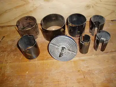 Midterstykket indeholder et almindeligt spiralbor til at holde centreringen, og udenom kan skrues "kopper" af forskellig størrelse med savtakker i kanten. Der udsaves derved hjul med hul i midten, og som regel er denne del affaldet, men det kan også bruges som hjul til legetøjsbiler, som børn laver i sløjd. Hulsaven monteres i en borepatron, almindeligvis på en bænk- eller søjleboremaskine.
