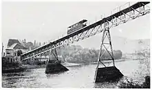 Den gamle Hungerburgbahn krydser floden Inn. Ca. 1907