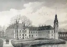 Hovedbygningen blev opført i 1588, genopført i 1681 efter en brand og ombygget år1878-1882 ved arkitekt Johan Schrøder. Bygningsanlægget er fredet.
