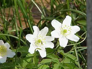 Hvid anemone (Anemone nemorosa) er en 10-25 cm høj urt, der vokser i skove og krat, på heder og nordvendte skrænter. Hele planten er giftig.