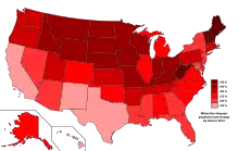 Hvide amerikanere er amerikanere, der betragtes eller rapporteres som hvide folk. United States Census Bureau definerer hvide folk som dem, der har oprindelse i de originale folkeslag i Europa, Mellemøsten eller Nordafrika.[1] Som alle officielle amerikanske racekategorier har "hvide" en "ikke hispanic eller latino" og en "Hispanic eller Latino" opgørelse,[2] sidstnævnte består primært af hvide mexicansk-amerikanere og hvide cubansk-amerikanere. Udtrykket "Caucasian" benyttes ofte skiftevis med "white", tiltrods for at udtrykkene ikke er synonymer.[3][4][5][6][7][8]