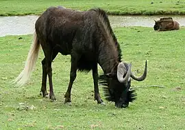 Den hvidhalede gnu (Connochaetes gnou) er en stor antilope, der er nært beslægtet med oksegnuen. Den kendes på sin lange hvide hestelignende hale. Pelsen er mørkebrun eller sort, og mellem forbenene og under maven findes lange sorte hår. Hoved og krop måler 170-220 cm, og vægten er 110-180 kg.[2] Den græsser på græssletter og i Karoos halvørken, hvor den færdes i løse flokke.