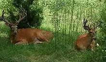 Hinden bliver kønsmoden efter et år, mens bukken ikke er kønsmoden før tidligst efter fire år. Parringen sker sent på efteråret, og hinden går drægtig i 6½ måned. Antallet af kalve øges med hindens alder: Som førstegangskælvende får den som regel kun én kalv, mens ældre hinder kan få op til tre kalve.