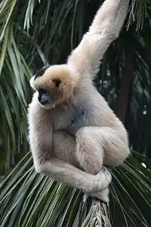 Den hvidkindede gibbon (Hylobates leucogenys) er en abe i gibbonfamilien. Den når en længde på 45-64 cm og vejer 4,5-9 kg. Den hvidkindede gibbons arme er længere end benene.