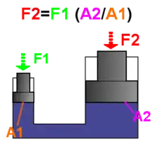 I bremsesystemer bruger man forbundne cylindre med forskellige størrelser, til at skabe de enorme kræfter. Bemærk at de har samme volumen men forskellige diametre, altså et forskelligt overfladeareal. I hvert af cylinderne vil der også være et stempel. I biler vil cylinderne og stemplerne med den største diameter, være placeret nede ved de enkelte bremseskiver, mens cylinderen med den mindre diameter, (hovedcylinderen), befinder sig oppe ved motoren. Hovedcylinderen er derfor højere og smallere, mens de andre er lavere og bredere.