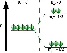 Magnetiske atomkerner udsættes for et magnetisk felt. Kernerne med modsatrettet spin har nu en højere energi end de andre kerner. Dette kaldes for Zeeman-effekten.