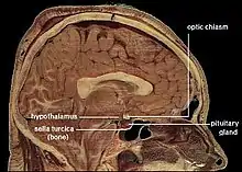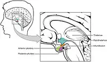 Skitse af hypothalamus-hypofyse-komplekset(pituitary gland = hypofysen)