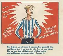 Sleipner-legenden Tore Keller i den klassiske spillerdragt blå og hvid stribede bluser og sorte bukser i Rekordmagasinet 1946.