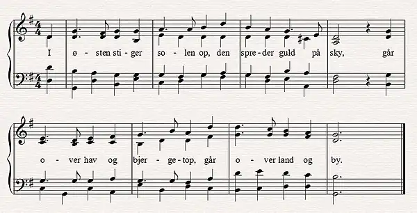 - I østen stiger solen op i Den Danske Salmebog (nr. 749)