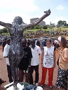 På World Social Forum i Nairobi havde kunstneren Jens Galschiøt i 2007 opstillet to statuer af den korsfæstede teenager, og for at undgå ophedede debatter om nøgenhed, havde kan lavet to specielle skulpturer, som dækker det genitale. På det sociale World Social Forum, stod ”i guds navn” bag flere aktiviteter.[2]