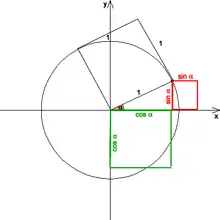 Den trigonometriske grundrelation[1] (også kaldet idiotformlen[2] eller idiotreglen[1]) er en matematisk ligning af den slags, der kaldes en identitet (fordi den er sand for ethvert ). Den siger at kvadraterne på sinus og cosinus til det samme tal tilsammen altid er lig med 1: